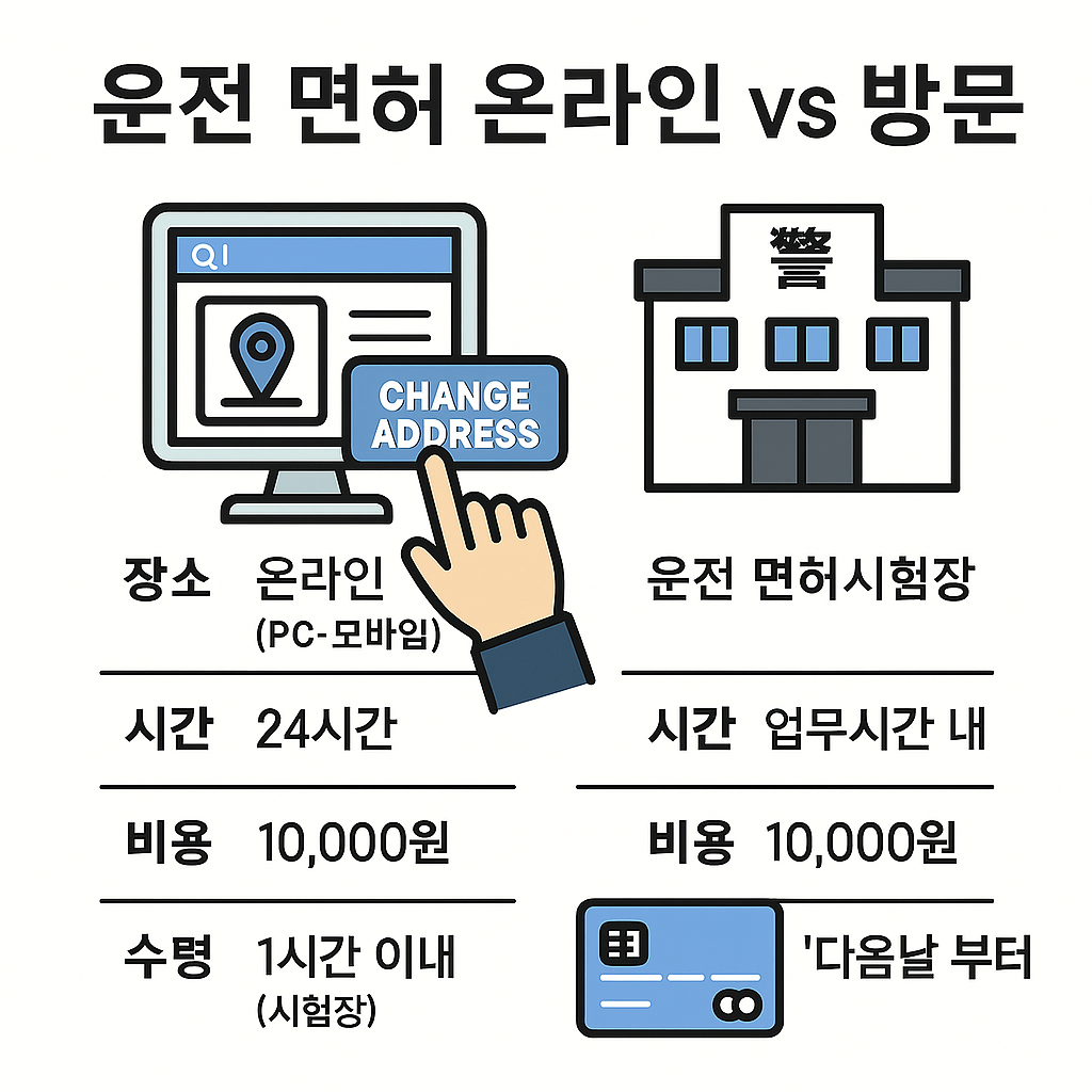 이사는 끝났는데... 운전면허증 주소변경은 어떻게 하지? 경찰서에 직접 가야 하나? 온라인으로도 되나? 준비물은 뭘 챙겨야 하지?